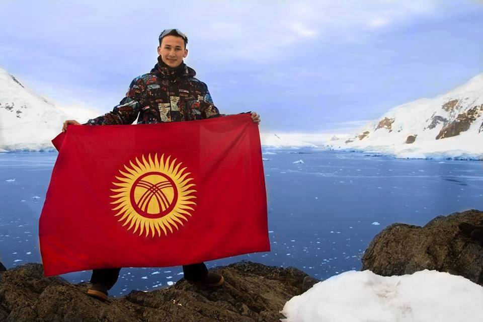 Флаг Кыргызстана доехал до Антарктики. Государственный символ нашей республики оказался вблизи от Южного полюса планеты благодаря студенту АУЦА Талгату Субаналиеву.