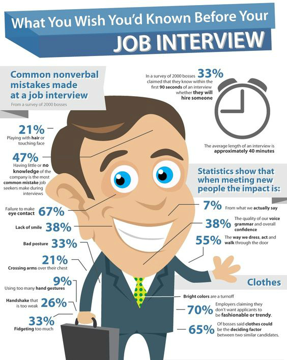 Произвести хорошее первое впечатление, значит обеспечить благосклонность работодателя в последующем интервью. Не успев заговорить, вы уже закладываете какую либо картинку о вас в его голове. Что является толчком для этого, так это ваш внешний вид. Как только вы заходите в кабинет работодателя, он уже анализирует то как вы выглядите и преподносите себя. Вы должны быть уверены, что ваш внешний вид и поведение выставляют вас в лучшем свете.