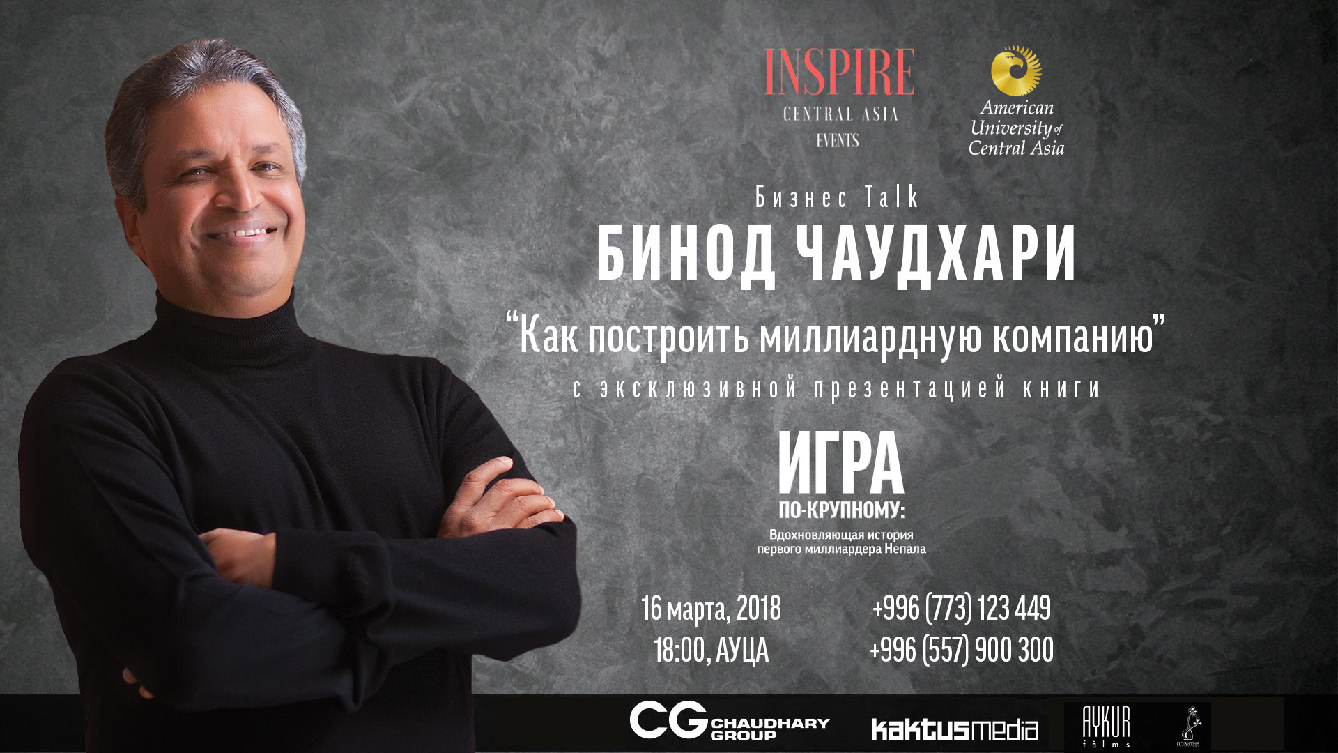 Inspire Central Asia совместно с АУЦА организовывают встречу с миллиардером списка Forbes Бинодом Чаудхари с лекцией "Как построить миллиардную компанию" 16 марта, 2018 в АУЦА!